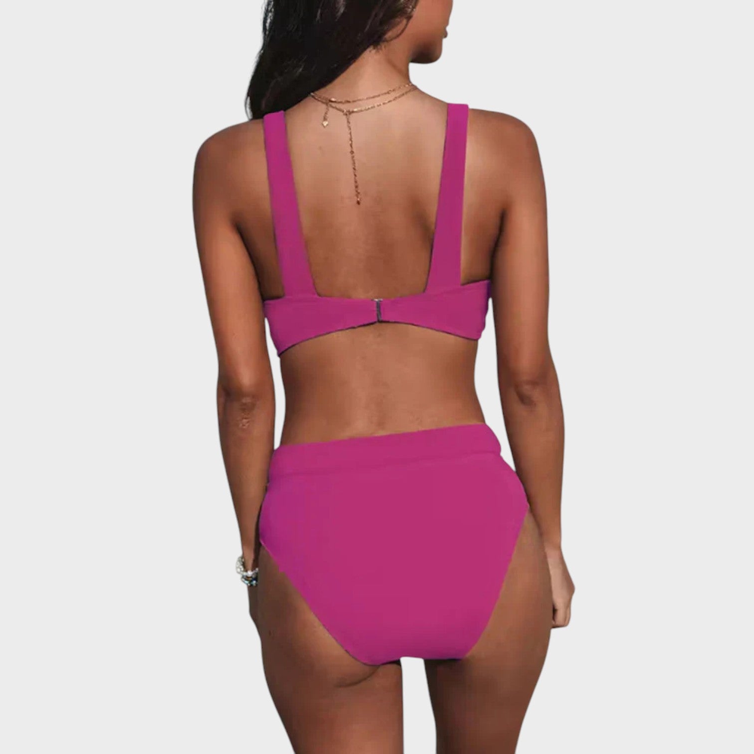 Este biquíni foi feito para mulheres que querem se sentir lindas e seguras na praia ou na piscina. Com top estruturado e alças largas para maior sustentação, ele oferece conforto sem abrir mão do estilo. A calcinha de cintura alta modela suavemente a silhueta, garantindo um visual elegante e moderno.