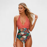 Este maiô é a fusão perfeita entre sofisticação e vibração tropical. Com decote halter profundo em verde petróleo e a parte inferior estampada com folhagens exuberantes, ele cria um visual impactante e elegante. O detalhe drapeado na cintura realça a silhueta com efeito modelador, trazendo confiança e conforto. Ideal para destacar-se à beira da piscina, no resort ou durante uma escapada ao mar — este é o look para quem quer mergulhar no verão com estilo.