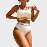 Este biquíni de duas peças em tecido canelado traz o equilíbrio perfeito entre sofisticação e autenticidade. O branco clássico é realçado por um bordado étnico em ziguezague nos acabamentos, criando um contraste vibrante e cheio de personalidade. O top tipo cropped com alças finas e a cueca de cintura subida oferecem suporte, conforto e um toque retro-chique, ideal para quem quer destacar-se com discrição elegante nas suas escapadelas de verão.
