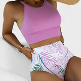Este biquíni de cintura subida é a escolha ideal para quem procura aliar conforto, estilo e um visual contemporâneo. O top de corte desportivo oferece suporte extra e liberdade de movimentos, enquanto a parte de baixo com estampado botânico confere um ar fresco e sofisticado.